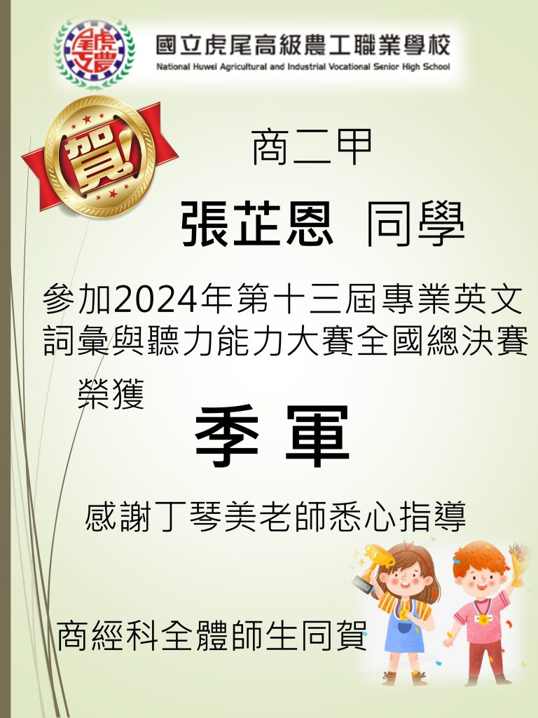 2024年第十三屆專業英文詞彙與聽力能力大賽全國總決賽