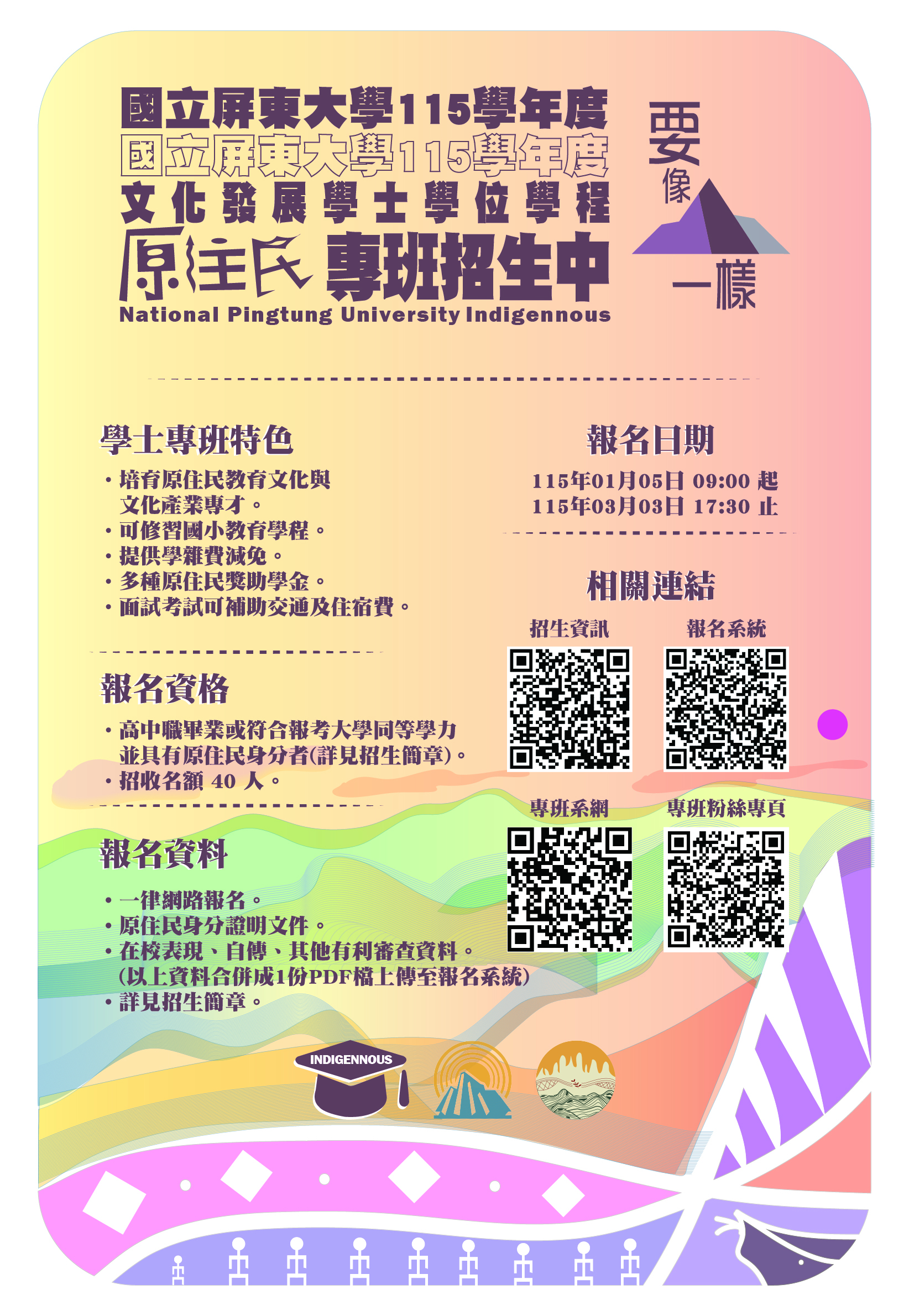轉知國立屏東大學115學年度文化發展學士學位學程原住民專班入學招生訊息Post author:hwaivsylc048Post published:2025 年 12 月 24 日Post category:學校公告來文-21-1下載114FF01725_1_23135124775下載114FF01725_2_23135124775下載 Post Views: 8相關內容主旨:台灣發明商品促進協會辦理「2025法國艾菲爾國際發明競賽」,敬請惠予公告並轉知 貴校師生踴躍參加。2025 年 2 月 24 日轉知客家委員會「來上客-12年國教客語文學習入口網站」全國線上競賽活動,請同學生踴躍參加。2025 年 11 月 24 日轉公告司法院「國民法官選任、審理及評議程序」教育影片播放連結網址,請查照。2025 年 10 月 13 日
