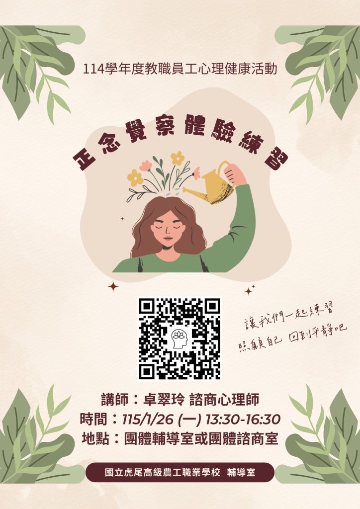 研習主題:正念覺察的靜心紓壓工作坊