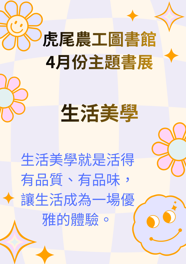 本校圖書館4月主題書展:「生活美學」,歡迎師生前來借閱~Post author:hwaivsylc045Post published:2026 年 4 月 8 日Post category:圖書館 / 圖書館處室公告 / 學校公告 Post Views: 9相關內容教育部因材網高級中等學校自然與數學領域及電機與電子群科等科目「多元自主學習推廣說明會」相關資訊。2025 年 6 月 9 日轉公告教育部青年發展署「公共事務人才系列培力活動-基礎入門課程」(南部場),請查照。2025 年 9 月 11 日【調課公告】114學年度第二學期調整上課日期1月21日(三)第5、6、7節與1月23日(五)第5、6、7節對調。2026 年 1 月 8 日