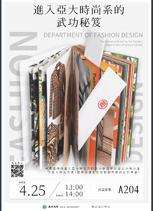 轉知亞洲大學時尚設計學系辦理工作營,歡迎踴躍報名參加。Post author:hwaivsylc024Post published:2026 年 4 月 15 日Post category:學校公告亞洲大學時尚設計學系辦理工作營-來文下載亞洲大學時尚設計學系辦理工作營-附件一下載亞洲大學時尚設計學系辦理工作營-附件二下載亞洲大學時尚設計學系辦理工作營-附件三下載 Post Views: 8相關內容「2025 Google Gemini全臺高中社團祭」活動,歡迎踴躍報名參加。2025 年 9 月 16 日主旨:檢送桃園市政府青年事務局補助智遊旅程股份有限公司辦理之「2025 ITA智慧旅遊程式創意提案競賽」EDM1份,請查照。2025 年 10 月 27 日學習成就測驗協會訂於2025年11月21日(星期五)舉辦高中三年級(12年級)「2025臺灣中小學中文能力檢定考試」(Taiwan Chinese Test,TCT ),請同學踴躍報名參加。2025 年 9 月 8 日
